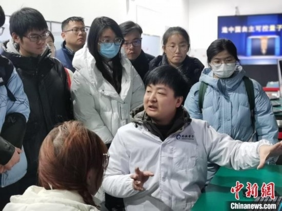 量子計(jì)算專家向高校學(xué)生介紹量子計(jì)算芯片。張俊 攝