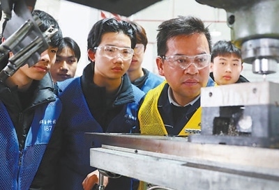 湖南省永州市新田縣產(chǎn)業(yè)開發(fā)區(qū),新田縣職業(yè)中等專業(yè)學(xué)校學(xué)生在學(xué)習(xí)機床操作技術(shù)。劉貴雄攝(新華社發(fā))