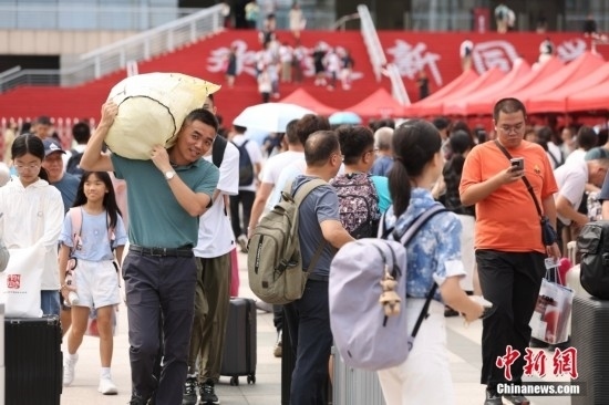 8月19日,北京大學(xué)迎來2024級(jí)新生報(bào)到。圖為學(xué)生帶著家長(zhǎng)一起報(bào)到。