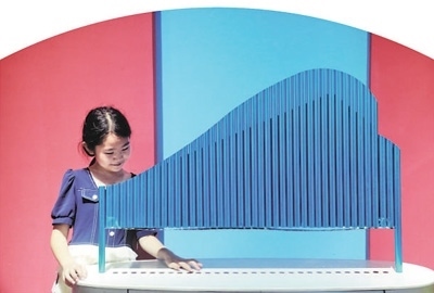 科普教育山東省濰坊市高密市科技館內(nèi),小朋友在體驗音樂科普設備。李海濤攝(新華社發(fā))