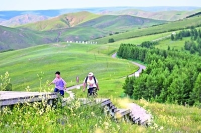 家長與孩子在內(nèi)蒙古大青山國家級(jí)自然保護(hù)區(qū)徒步。新華社發(fā)