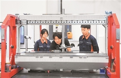 在西安航空職業(yè)技術(shù)學(xué)院,“飛機(jī)鈑金成形技術(shù)”課程以機(jī)翼帶筋壁板、機(jī)身蒙皮等典型的飛機(jī)鈑金零件為載體,圍繞成形原理、工藝過(guò)程、質(zhì)量檢驗(yàn)等典型生產(chǎn)環(huán)節(jié),設(shè)計(jì)8大模塊32個(gè)學(xué)習(xí)任務(wù),并將機(jī)翼整體壁板噴丸成形、大型蒙皮拉伸成形等8項(xiàng)國(guó)產(chǎn)大飛機(jī)新技術(shù)、新工藝引入課程……