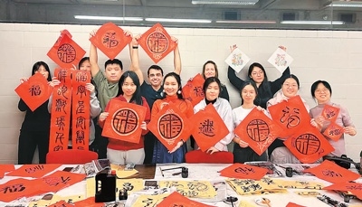 書畫社推動(dòng)了中國(guó)文化在校園里的傳播。秦思涵說:“今年除夕夜,我們?cè)趯W(xué)校擺攤賣春聯(lián)時(shí)發(fā)生了一件事情。一名女生問我,能否為她和她的室友們寫一副春聯(lián),里面包含她們的中文名字。有一名女孩不知道自己中文名字叫什么。她是一名扇舞舞者,我想了很久,為她起了名字‘葉舞翎’,并將其融入了春聯(lián)祝福。春聯(lián)寫好后,我們每個(gè)人都很開心。這樣的小事還有很多,越來越多人對(duì)我們的文化感興趣?!?/p>