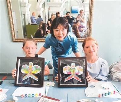 不久后的9月,“東方雅韻——中國文化藝術(shù)展”2.0版本及“天涯共此時(shí)”中秋文化體驗(yàn)活動(dòng)在西班牙馬德里中國文化中心舉辦。天津博物館首次將體驗(yàn)工坊帶進(jìn)馬德里社區(qū),當(dāng)?shù)貎和跉g聲笑語中沉浸式感受中華傳統(tǒng)技藝,一位當(dāng)?shù)嘏W⒌赜猛赜」ぞ邚?fù)刻楊柳青木版年畫,她指尖起落間,寓意吉祥的“連年有余”圖案逐漸清晰。工坊結(jié)束后,大家拿著自己拓印的團(tuán)扇、親手捏制的中秋兔子與老師合影,還放飛了自己動(dòng)手著色的迷你風(fēng)箏。