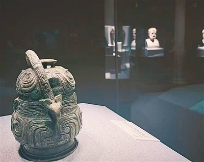 她的這番話讓我回想起開展當(dāng)天的凌晨。我站在展廳中央,環(huán)顧四下,看著那些跨越山海而來的文物和我們?cè)翰匚奈镆黄?,在燈下泛著溫潤的光,像是散落在時(shí)間長河里的星辰。那一刻,我覺得自己是個(gè)幸運(yùn)的拾星者,得以用展線作銀梭將它們串聯(lián)成新的星圖——這星圖里有雅典娜的榮光,也有西王母的“神性”;有陶繪酒罐的多彩,也有青銅酒器的厚重。不同文明的星光交匯于一方展廳間,文物雖不會(huì)說話,但它們的存在本身就是擲地有聲的宣言——文明的故事從來不是孤立的敘事,文明更從無高下之分,雖有山海之隔,仍可同頻共振。