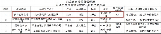 公告顯示,北京市市場監(jiān)督管理局2020年6月24日公示的洗滌用品質(zhì)量抽檢信息中,標(biāo)稱生產(chǎn)企業(yè)“北京市洛娃日化有限公司”,標(biāo)稱商標(biāo)“洛娃”,規(guī)格“2千克”,型號“普通型無磷”,生產(chǎn)日期或批號“B013”的多功能洗衣液,不合格項目“總活性物,規(guī)定污布的去污力”。該產(chǎn)品被抽檢場所為“密云縣密云鎮(zhèn)億源來商店”,現(xiàn)“北京市洛娃日化有限公司”聲稱該產(chǎn)品為假冒其注冊商標(biāo)及廠名、廠址的產(chǎn)品。