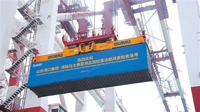 山東省港口集團·海陸馬士基亞洲孟加拉直達航線首航青島港現場。資料圖片