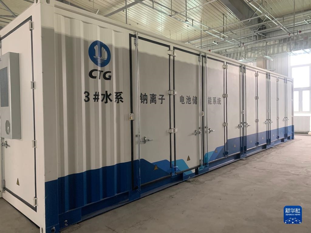這是1月21日拍攝的位于烏蘭察布市集寧區(qū)三峽現(xiàn)代能源創(chuàng)新示范園內(nèi)“源網(wǎng)荷儲(chǔ)”技術(shù)研發(fā)試驗(yàn)基地的水系鈉離子電池儲(chǔ)能系統(tǒng)。(新華社記者朱文哲 攝)