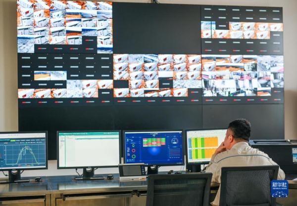 4月20日,在達(dá)拉特光伏發(fā)電應(yīng)用領(lǐng)跑基地,工作人員在運維中心主控室工作。新華社記者 王澤聰 攝