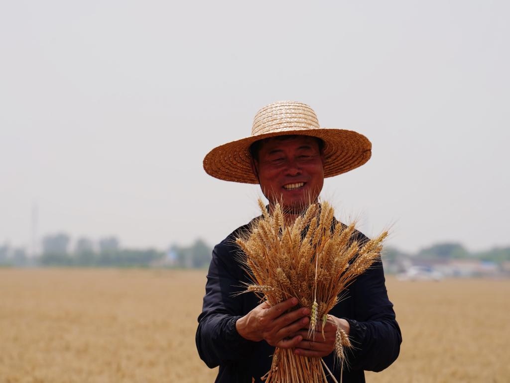 夏收時(shí)節(jié),在山東省德州市臨邑縣德平鎮(zhèn)大西關(guān)村的麥田里,幾臺(tái)收割機(jī)排成一排,轟隆隆地穿梭在金色的麥浪中。富民家庭農(nóng)場(chǎng)負(fù)責(zé)人魏德東指著剛收獲的小麥說(shuō):“畝產(chǎn)量將近1300斤,一畝地比往年增產(chǎn)了百十斤,不僅產(chǎn)量高,品質(zhì)也好。”