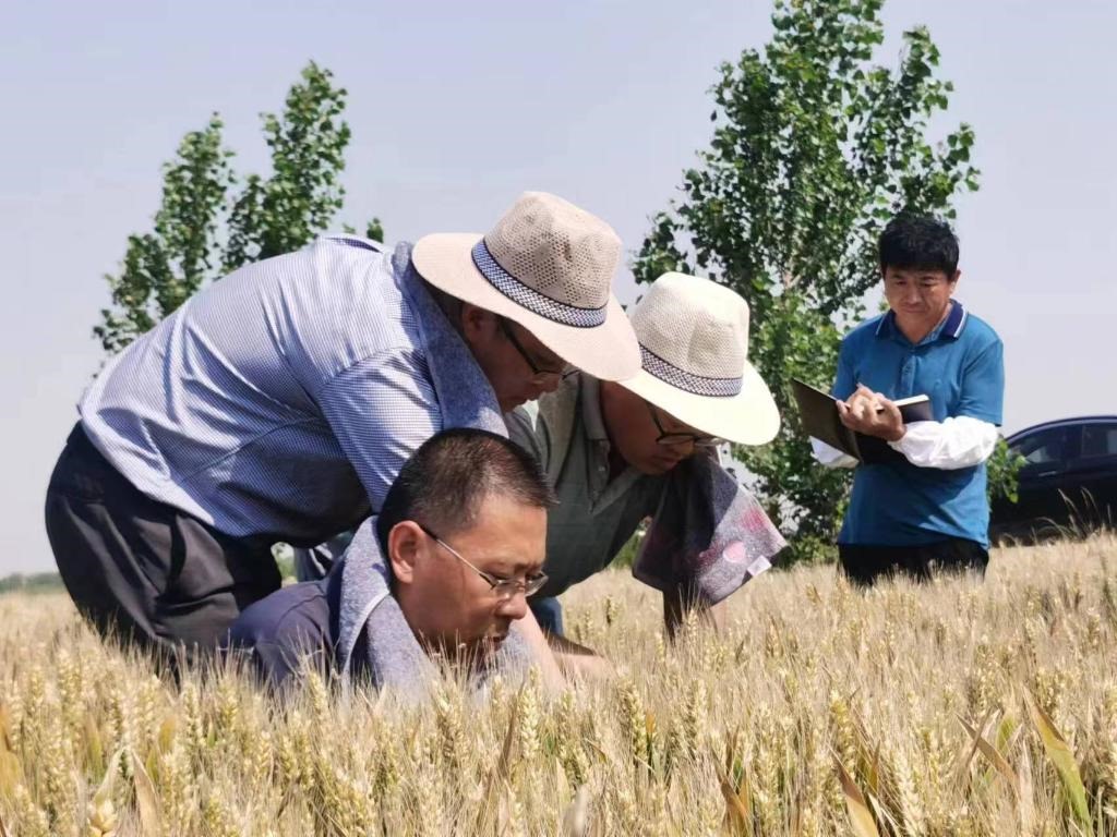 農(nóng)業(yè)專(zhuān)家正在臨邑縣翟家鎮(zhèn)的一處麥田里察看小麥長(zhǎng)勢(shì)。受訪者供圖。