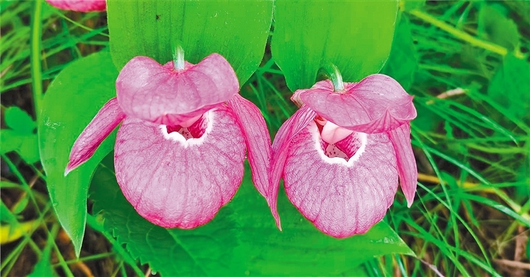 這3種杓蘭屬于內(nèi)蒙古大興安嶺珍稀的植物資源,零星分布在林下、林緣、林間草地上,或三五株,或十余株,每種杓蘭都各具特色。大花杓蘭呈紫紅色,花大,深囊狀的唇瓣如雞蛋般大??;紫點(diǎn)杓蘭花為白色,上面有淡紫色斑點(diǎn);黃囊杓蘭花色為淺黃色,唇瓣為深囊狀近橄欖型。由于杓蘭花朵形狀特別,非常惹人喜愛,許多人慕名來打卡拍照。