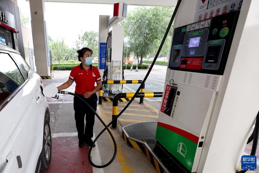 8月9日,江蘇南京一家加油站工作人員給汽車加油。新華社發(fā)(方東旭 攝)