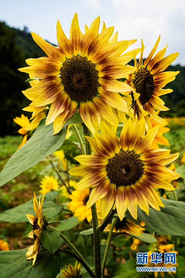 溫泉街道彩色向日葵(7月29日攝)。新華網(wǎng)發(fā)(安寧市溫泉街道供圖)