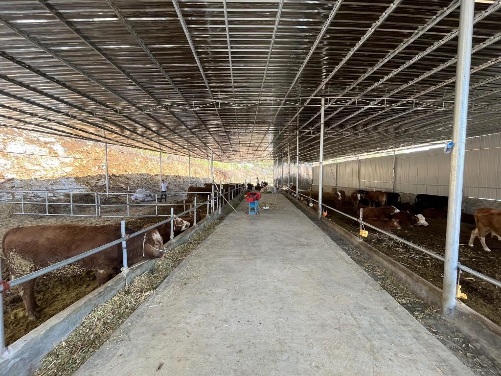 圖為2022年11月26日拍攝的貴州關(guān)嶺縣新鋪鎮(zhèn)臥龍村村民高志林的養(yǎng)牛場(chǎng)。新華社記者 李驚亞 攝