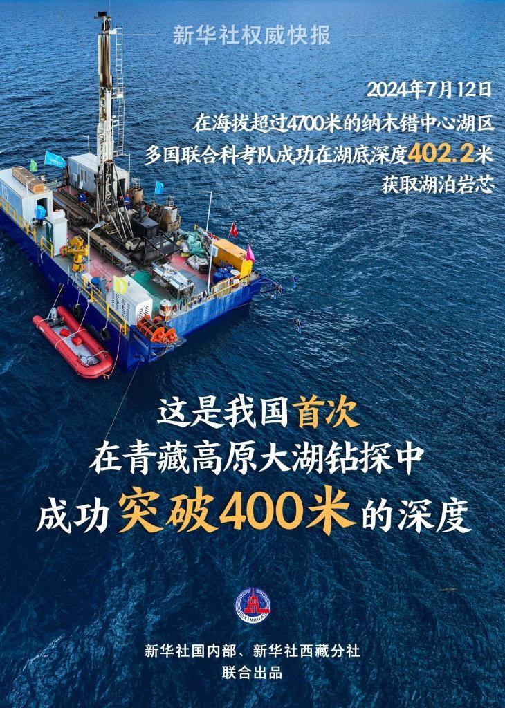 我國(guó)青藏高原大湖鉆探深度突破400米 納木錯(cuò)湖泊科考正在緊密開展。7月12日18時(shí)35分,在海拔......