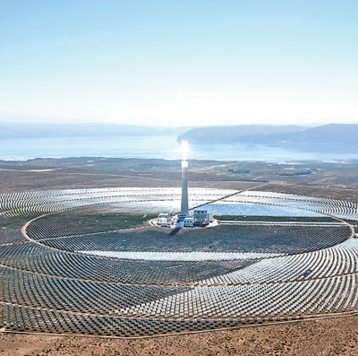 青海海南藏族自治州,太陽能生態(tài)發(fā)電園區(qū)內的50兆瓦熔鹽塔式光熱電站。本報記者 伊 霄攝