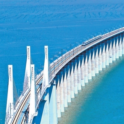 福廈高鐵湄洲灣跨海大橋,列車飛馳而過。新華社記者 魏培全攝