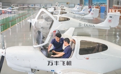 萬豐集團(tuán)技術(shù)人員在調(diào)試新下線的飛機(jī)。章永濤攝