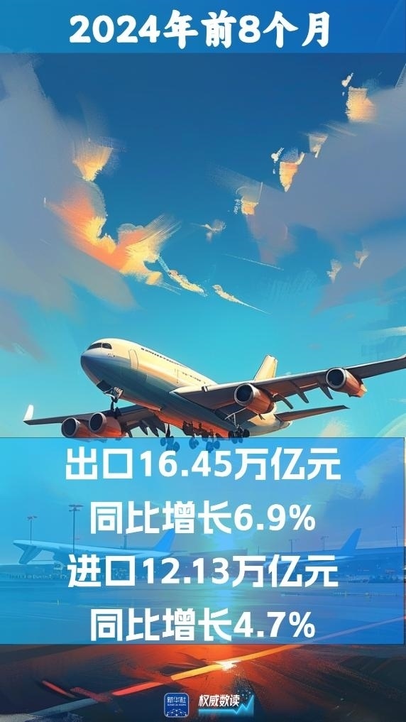 海關(guān)總署10日發(fā)布數(shù)據(jù):2024年前8個月,我國貨物貿(mào)易進出口總值28.58萬億元人民幣,同比增長6%。其中,出口16.45萬億元,同比增長6.9%;進口12.13萬億元,同比增長4.7%。