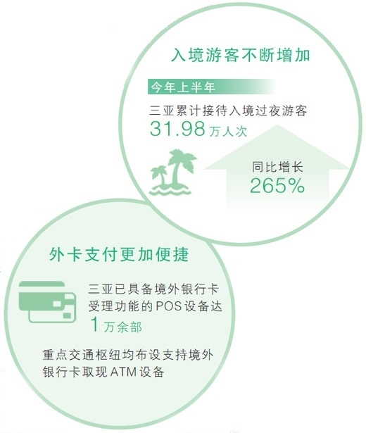 今年3月29日,三亞正式啟動(dòng)創(chuàng)建外籍來(lái)瓊?cè)藛T支付便利化示范城市工作,圍繞現(xiàn)鈔支付、數(shù)字人民幣支付、境外銀行卡支付、移動(dòng)支付、賬戶(hù)服務(wù)等五大支付服務(wù)體系,持續(xù)優(yōu)化“食住行游購(gòu)?qiáng)梳t(yī)”七大領(lǐng)域支付便利化水平,滿(mǎn)足短期差旅及中長(zhǎng)期學(xué)習(xí)、工作、居住等不同類(lèi)型外籍來(lái)瓊?cè)藛T在三亞的支付需求。