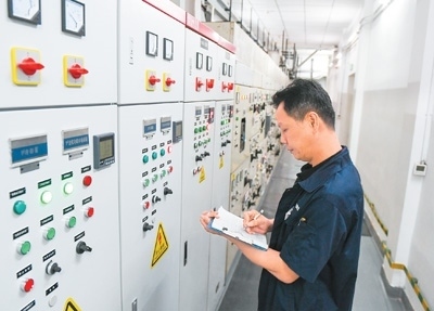 8月21日,在廣東省深圳市國貿(mào)大廈空調(diào)機房,物業(yè)工作人員在新裝的智能物聯(lián)網(wǎng)控制柜前進行運行抄表。新華社記者 毛思倩攝