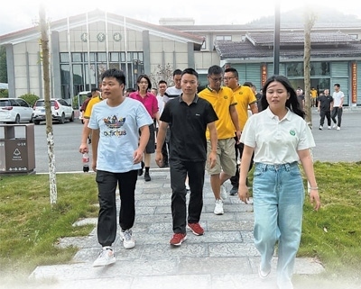 湖北省來鳳縣舊司鎮(zhèn),班主任(前排右一)帶領(lǐng)學(xué)員參觀全國(guó)鄉(xiāng)村治理示范村新街村。田 根攝(人民視覺)