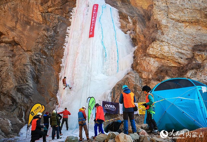1月16日,由內(nèi)蒙古登山協(xié)會(huì)、內(nèi)蒙古攀巖攀冰協(xié)會(huì)聯(lián)合舉辦的內(nèi)蒙古第七屆攀冰交流大會(huì)在包頭市土默特右旗舉行,來(lái)自內(nèi)蒙古各地的攀冰愛好者和戶外運(yùn)動(dòng)愛好者在晶瑩剔透的冰瀑上挑戰(zhàn)自我,感受極限運(yùn)動(dòng)帶來(lái)的樂趣。(丁根厚)