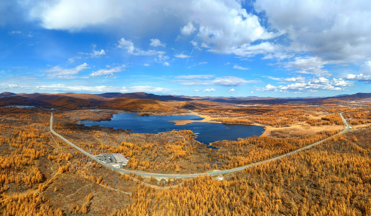 阿爾山,全稱“哈倫—阿爾山”,系蒙古語,意為熱的圣水。阿爾山地處內(nèi)蒙古興安盟、大興安嶺西南麓,有著“濃縮的自然博物館”之譽——草原、森林、溫泉、火山遺跡在此共生,四季皆美,而最迷人的,當(dāng)屬秋日那抹獨有的“金漸層”,泛黃的落葉松、火紅的楓葉、翠綠的松柏,高空俯瞰,滿目詩意。