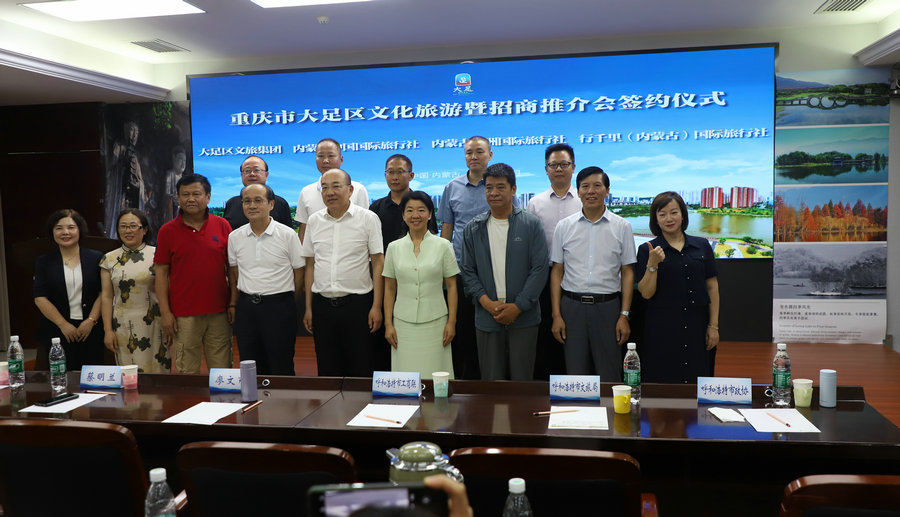 7月7日,重慶市大足區(qū)文化旅游暨招商推介會(huì)在內(nèi)蒙古呼和浩特舉行,內(nèi)蒙古三家旅行社與大足區(qū)文旅集團(tuán)簽約合作,開啟“南北協(xié)作、互送客源”的合作之旅。