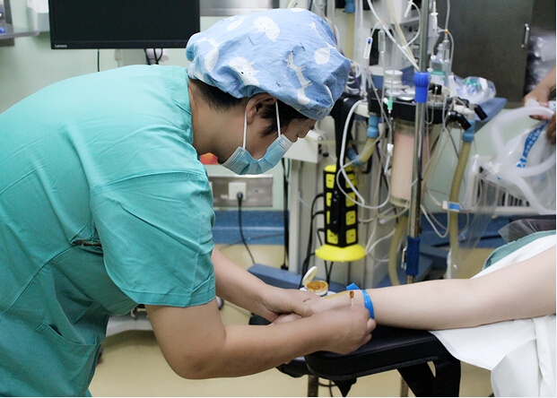 剛來(lái)到手術(shù)室,她根據(jù)科室的工作特點(diǎn),發(fā)現(xiàn)作為以婦產(chǎn)科為龍頭科室的醫(yī)院來(lái)說(shuō),急診搶救的時(shí)候非常多,而在這種情況下,術(shù)中采血顯得非常重要,既能讓醫(yī)生實(shí)時(shí)根據(jù)化驗(yàn)結(jié)果的提示,制定搶救計(jì)劃,又能為搶救的效果提供臨床依據(jù)。所以巡回護(hù)士的采血技能尤為重要,根據(jù)這一情況,護(hù)士長(zhǎng)決定開展動(dòng)脈置管術(shù)。提前將留置針置于動(dòng)脈內(nèi),術(shù)中需要采血做化驗(yàn)檢查時(shí),從置管處直接抽取血液,這樣既能省略護(hù)士穿刺找血管的時(shí)間,又能及時(shí)將血標(biāo)本送檢,為搶救治療提供保障的同時(shí)節(jié)約了時(shí)間。但是需人人在短時(shí)間內(nèi)掌握這一新技術(shù)。