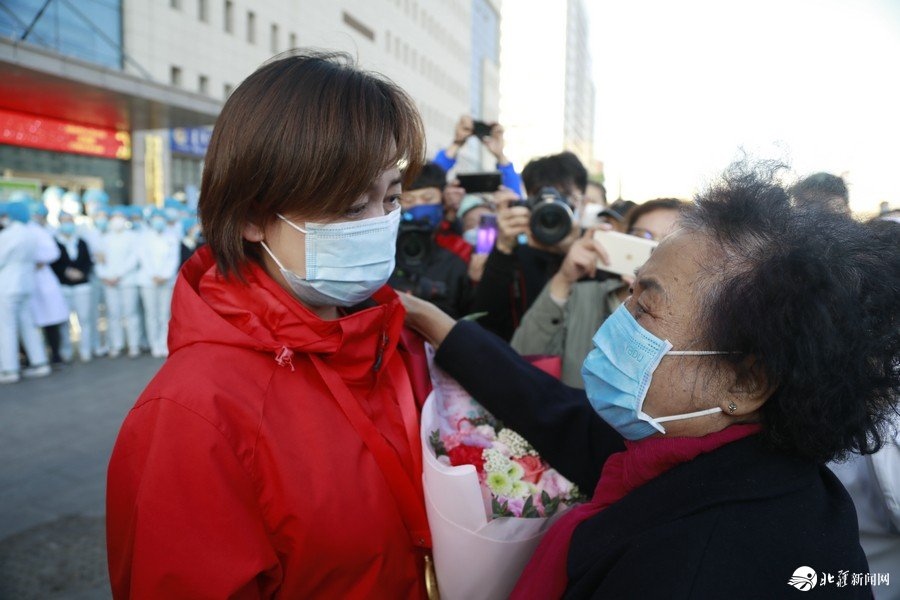 “終于把你們盼回來啦!”家人、同事們熱情擁抱,喜極而泣,歡迎“白衣戰(zhàn)士”平安歸來。