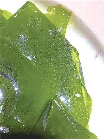 據(jù)劉女士回憶,8月9日晚,她和女兒到鄂爾多斯市伊金霍洛旗額爾敦傳統(tǒng)涮(伊旗店)吃飯,母女二人正吃得暢快之際,突然發(fā)現(xiàn)在一盤海帶里有一只蜘蛛(如圖),在盤子里爬來(lái)爬去,看見這一幕,母女二人胃口全無(wú)。隨即,劉女士和服務(wù)人員進(jìn)行了溝通。
