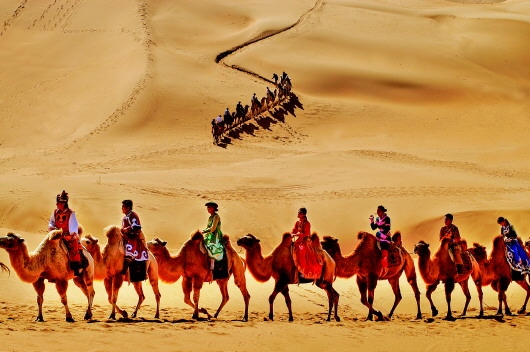 沙漠中的駝隊(duì)。(資料圖片)記者徐建攝