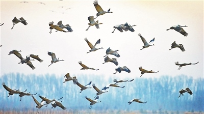 觀鳥者在密云區(qū)拍攝到的灰鶴,系國家II級保護(hù)鳥類