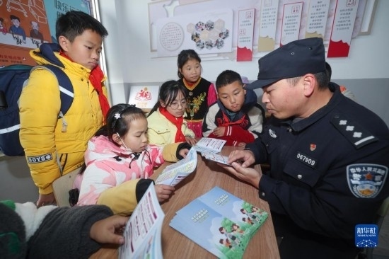 2月21日,在呼和浩特市玉泉區(qū)小召街道五塔寺廣場臨時核酸采樣點(diǎn),玉泉交管大隊民警在執(zhí)勤。新華網(wǎng)發(fā) (丁根厚 攝)