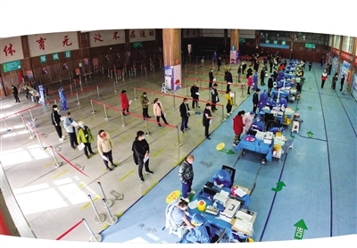 “從3月9日開始,呼和浩特全民健身中心乒羽網(wǎng)保館進行全面消殺,10日正式開始接種疫苗。配有大量志愿者現(xiàn)場維持秩序和引導(dǎo)市民有序接種,并針對一些特殊群體開辟了綠色通道,有效保證疫苗正常接種秩序。”呼和浩特市全民健身服務(wù)中心黨支部副書記于首淼說。