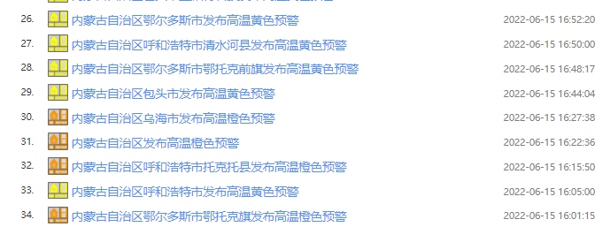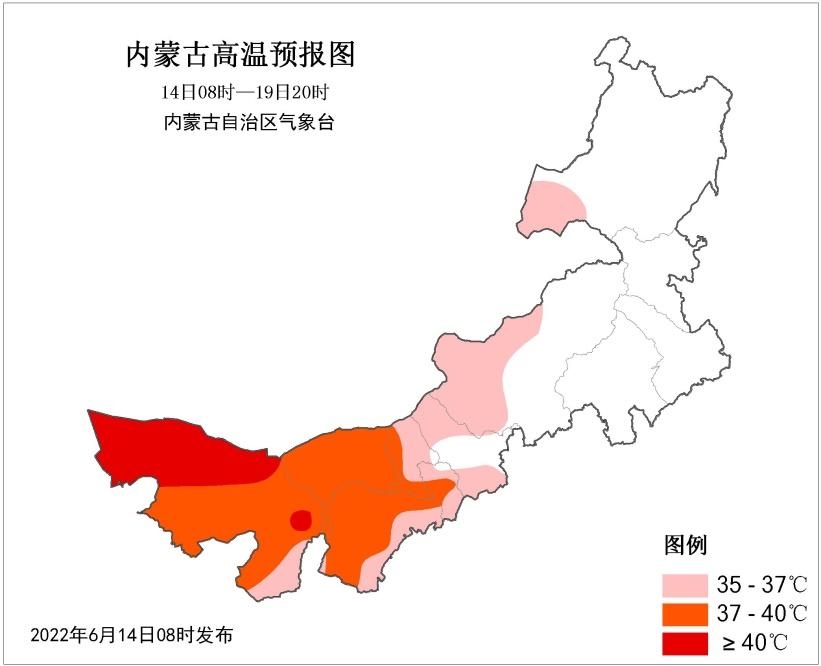 據(jù)內(nèi)蒙古氣象臺(tái)預(yù)計(jì),6月16~20日連續(xù)5天,內(nèi)蒙古西部及中部偏西大部地區(qū)(阿拉善盟、烏海市、巴彥淖爾市、鄂爾多斯市、包頭市、呼和浩特市等大部地區(qū))將迎來(lái)今年首次大范圍35℃以上高溫天氣,其中,西部部分地區(qū)最高氣溫將達(dá)37℃及以上,局地超過(guò)40℃;20~21日阿拉善盟高溫將逐漸減弱消失,而35℃以上高溫天氣向錫林郭勒盟西部延伸。