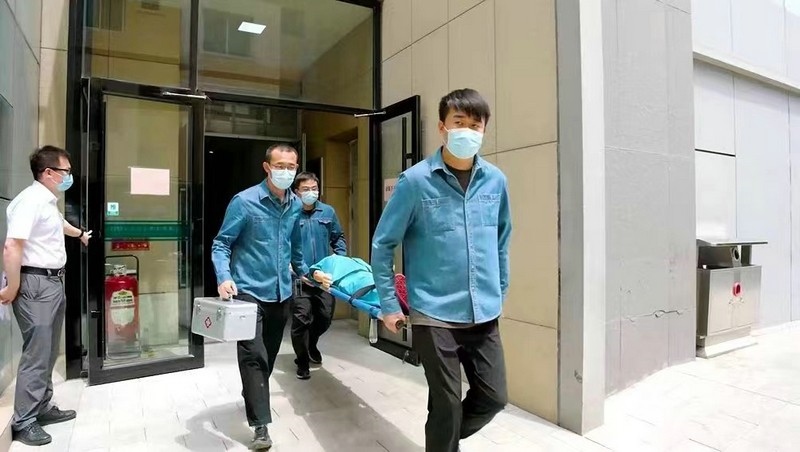 在隨后進(jìn)行的消防安全應(yīng)急疏散演練模擬中,消防組、醫(yī)療組與信息組各司其職,默契配合,順利完成預(yù)定的各項(xiàng)任務(wù)。培訓(xùn)人員通過現(xiàn)場演示滅火器使用的操作程序,使參訓(xùn)人員正確掌握了滅火器的操作方法。