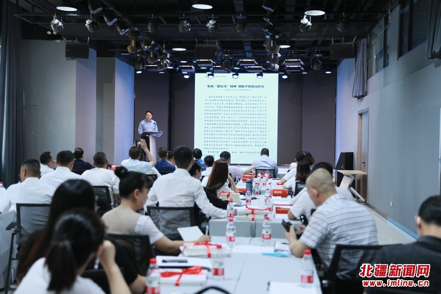 “蒙古馬精神,是吃苦耐勞的奉獻精神、一往無前的進取精神、不達目的決不罷休的奮斗精神。它的本質(zhì)是赤膽忠心的精神,發(fā)揚的是忠于職守的精神,做到了不忘初心、牢記使命的現(xiàn)實途徑?!碑斕欤瑑?nèi)蒙古自治區(qū)黨建研究會特邀研究員、呼倫貝爾市委原二級巡視員、原內(nèi)蒙古森工集團組織部部長哈斯,為所有黨員講授“蒙古馬精神”主題黨課。