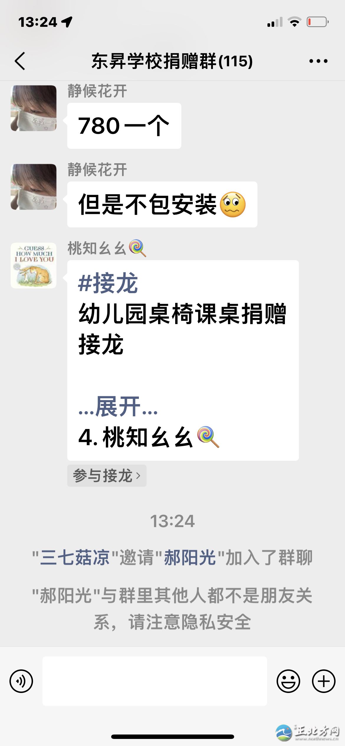 近日,記者對呼和浩特市民辦小學(xué)博士校長張慧聰心系鄉(xiāng)村教育,為接管一所鄉(xiāng)村小學(xué)賣掉婚房、接送偏遠(yuǎn)地區(qū)孩子們上學(xué)而走紅網(wǎng)絡(luò)的事情進(jìn)行了報道。張慧聰?shù)氖论E也傳到了各地,截止記者發(fā)稿時,全國130多位愛心人士以及一些機(jī)構(gòu)紛紛捐款、捐物。記者在百人愛心群看到,不時有來自各地的愛心人士進(jìn)群,表達(dá)對張慧聰和孩子們的關(guān)愛。