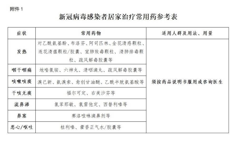 附件:1.新冠病毒感染者居家治療常用藥參考表