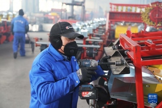 2月16日,在甘肅省定西市一家農(nóng)機制造企業(yè),工人在組裝農(nóng)機。