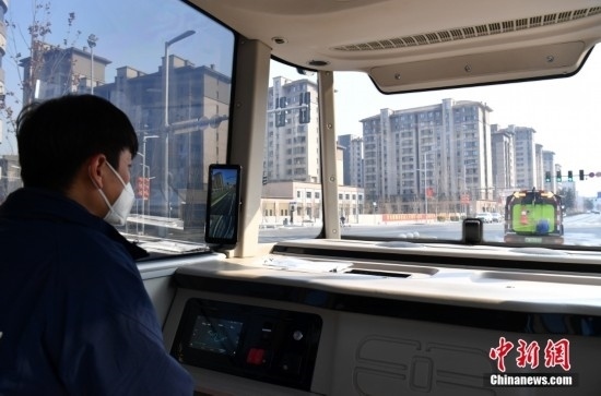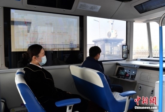 2月22日,智能網(wǎng)聯(lián)巴士901線測試車輛準(zhǔn)備發(fā)車。雄安新區(qū)的智能網(wǎng)聯(lián)巴士近期正在進(jìn)行投入運營前的道路測試,該巴士配備了超高感度攝像頭、超聲波雷達(dá)、激光雷達(dá)、毫米波雷達(dá)等感知設(shè)備,組成了車輛的“眼睛”。車輛可自主識別紅綠燈、道路提示牌和車道標(biāo)線等,做出跟車、超車、停車等動作。中新社記者 韓冰 攝