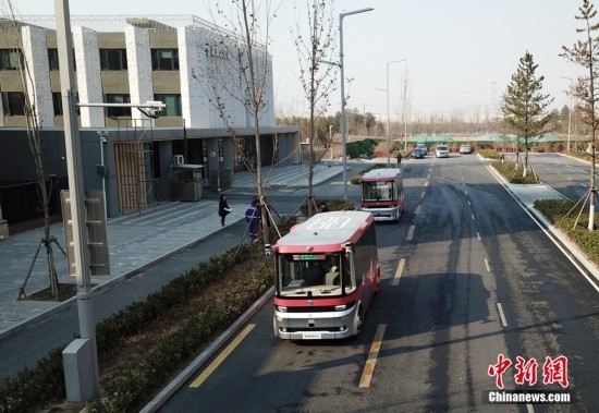 2月22日,智能網(wǎng)聯(lián)巴士901線測試車輛與普通城市公交車駛出公交站臺。雄安新區(qū)的智能網(wǎng)聯(lián)巴士近期正在進(jìn)行投入運營前的道路測試,該巴士配備了超高感度攝像頭、超聲波雷達(dá)、激光雷達(dá)、毫米波雷達(dá)等感知設(shè)備,組成了車輛的“眼睛”。車輛可自主識別紅綠燈、道路提示牌和車道標(biāo)線等,做出跟車、超車、停車等動作。中新社記者 韓冰 攝