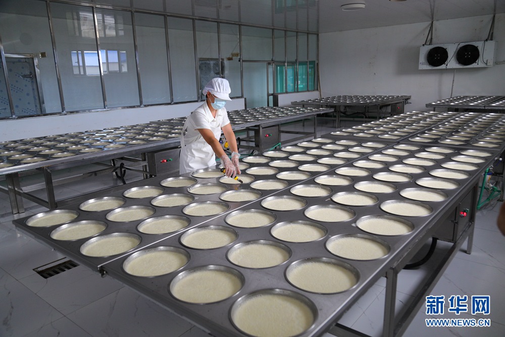奶制品加工廠工作人員正在制作奶制品。新華網(wǎng)發(fā)(白敖敏 攝)