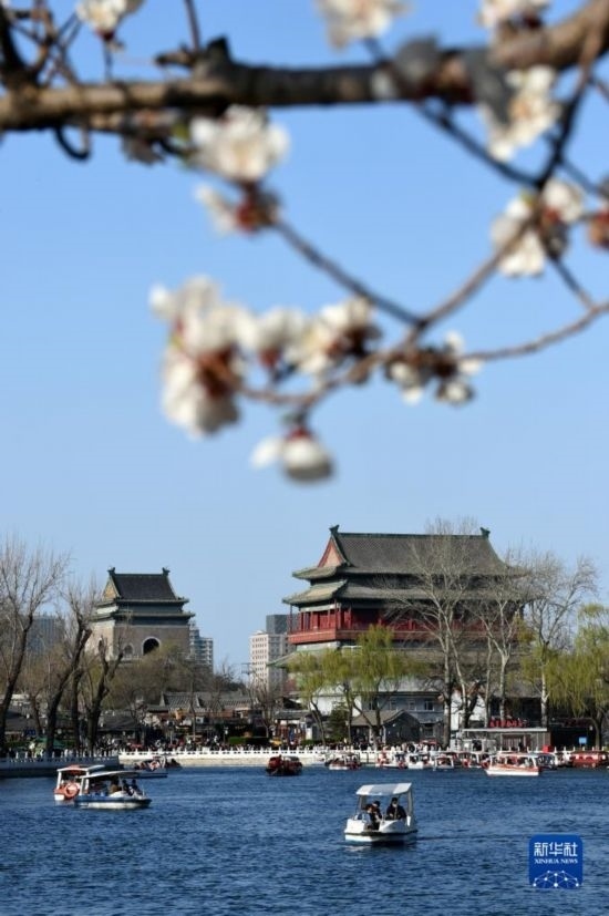 3月25日,游客在北京什剎海附近游玩。