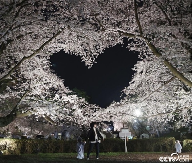 當(dāng)?shù)貢r間4月15日,日本青森縣弘前市弘前公園的櫻花進(jìn)入盛開季。其中,有兩株盛開的櫻花樹枝相互交織,在空中形成了一個愛心形狀,成為熱門觀光景點。
