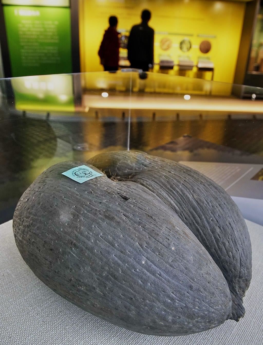 這是4月27日在國家植物園拍攝的海椰子種子。新華社記者 李欣 攝