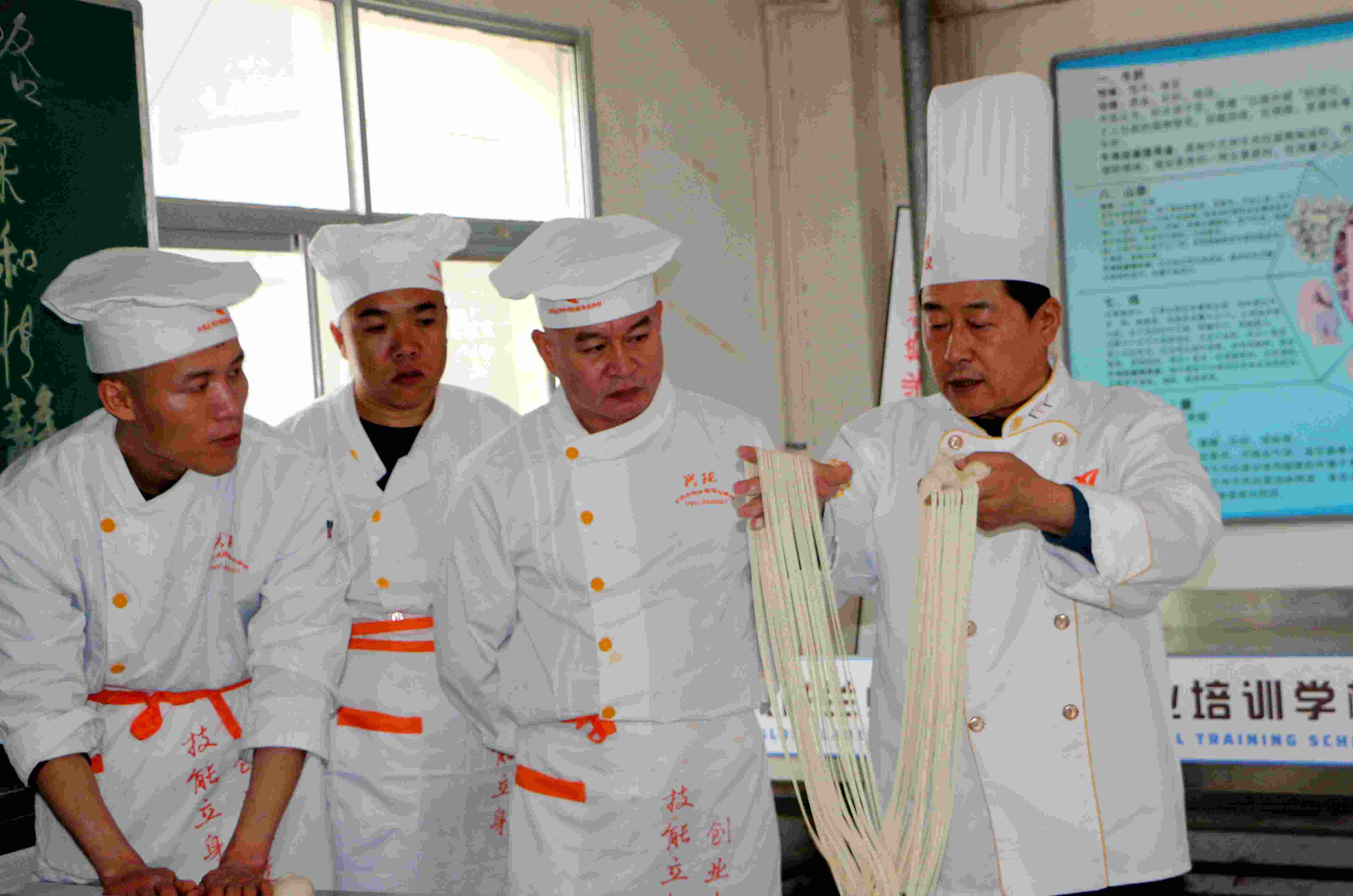 周興國正在教學(xué)員拉面技巧